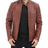 Benjamin Mens Cafe Racer Brown Leather Jacket