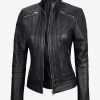 Bergamo Women’s Cafe Racer Black Leather Jacket