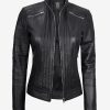 Bergamo Women’s Cafe Racer Black Leather Jacket