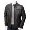 Black Leather Double Pockets Biker Jacket Men’s