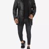 Bristol Men’s Black Real Leather Car Coat – 3/4 Length Coat