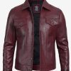 Fernando Men’s Maroon Lambskin Leather Trucker Jacket